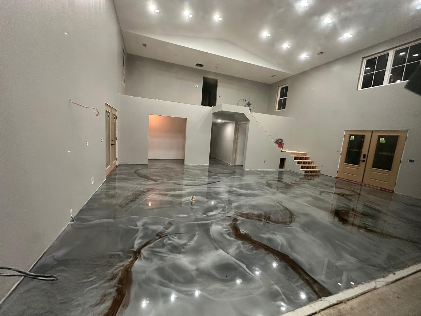 - Commercial-grade epoxy flooring systems